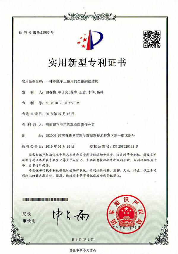 一種冷藏車上使用的全鋁副梁結(jié)構(gòu)